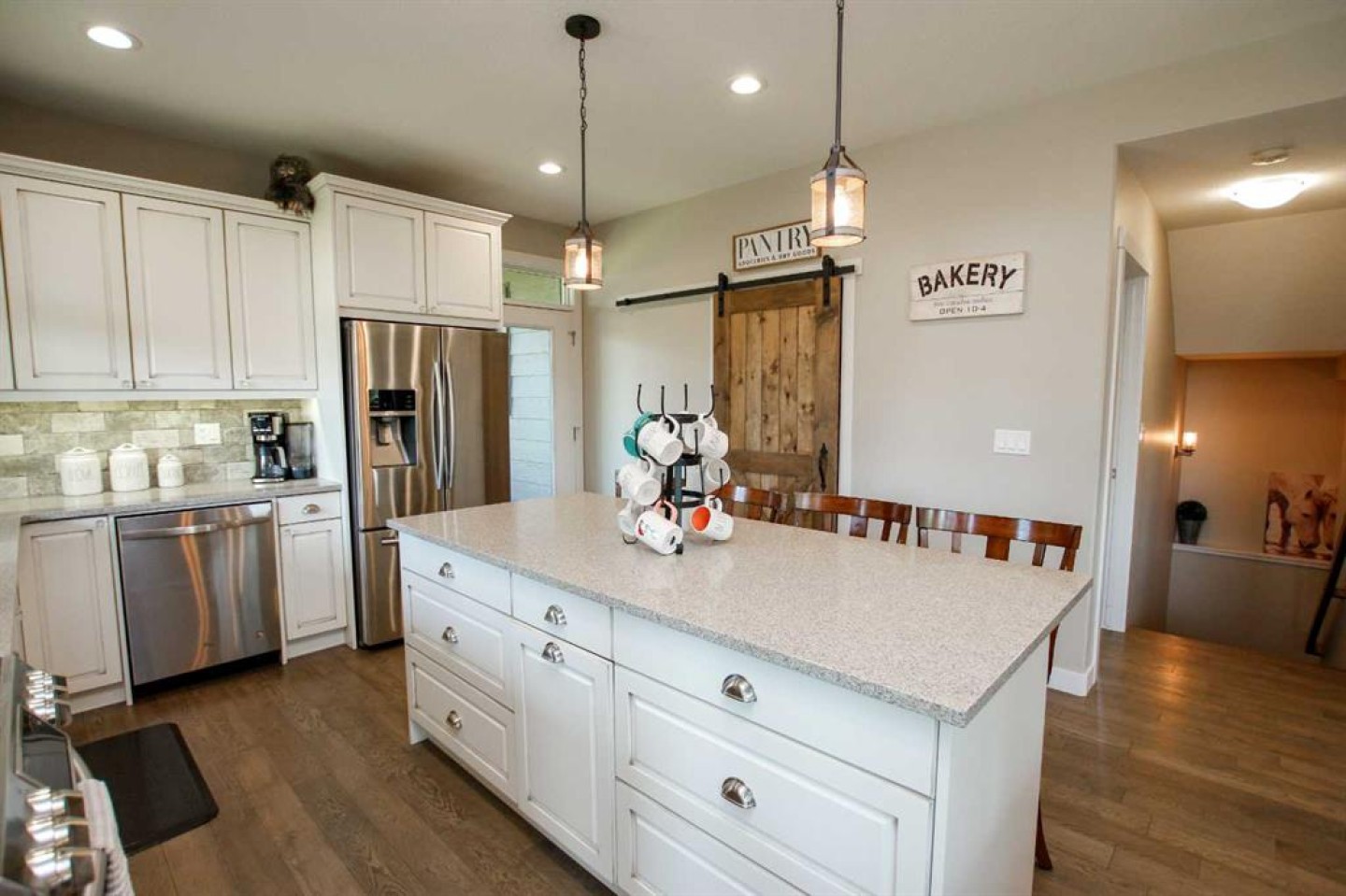 Breakfast Bar, Built-in Features, Ceiling Fan(s), Central Vacuum, Chandelier, Closet Organizers, High Ceilings, Kitchen Island, Open Floorplan, Pantry, Quartz Counters, Recessed Lighting, See Remarks, Separate Entrance, Storage, Vinyl Windows